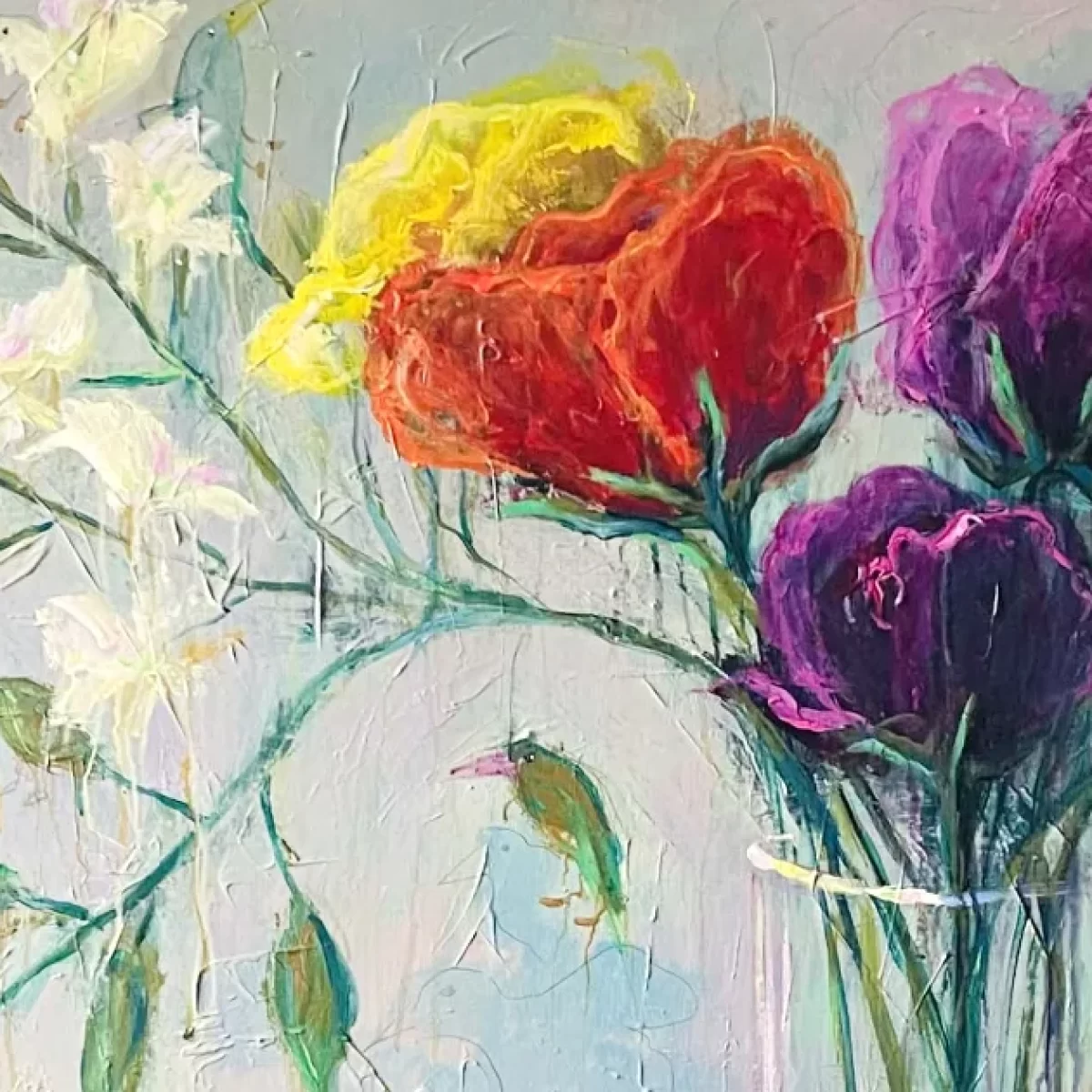 Du vil i 3 timer blive guidet igennem tilblivelsen af et værk, af vores lokale kunstner Lea P. Der males efter en buket blomster.